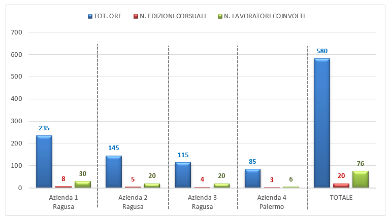 In sede di presentazione del Piano, le aziende beneficiarie della formazione erano n. 4, collocate geograficamente nella provincia di Ragusa e Palermo.