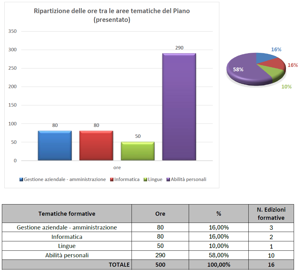 A conclusione del piano formativo sono state rispettate le percentuali così come previsto dall'avviso, precisamente: su 500 ore di formazione (al netto della fad), 264 ore (52,80%) sono state svolte da docenti con una esperienza non inferiore a 10 anni continuativi, 0 ore (0,00%) sono state svolte da docenti con esperienza inferiore a 5 anni e 500 ore (100,00%) ore sono state svolte con da docenti con una esperienza non inferiore a 5 anni continuativi.